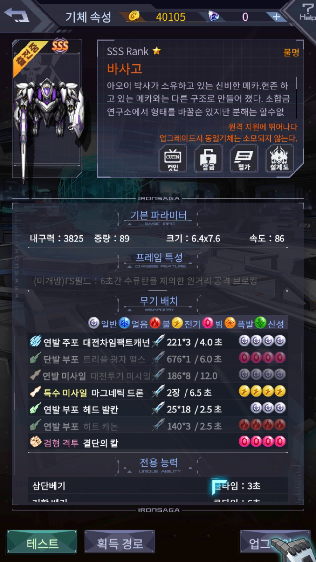 캐릭터를 얻게 되면 그 캐릭터에게 맞는 메카도 얻게 되는 것을 확인할 수 있었습니다.