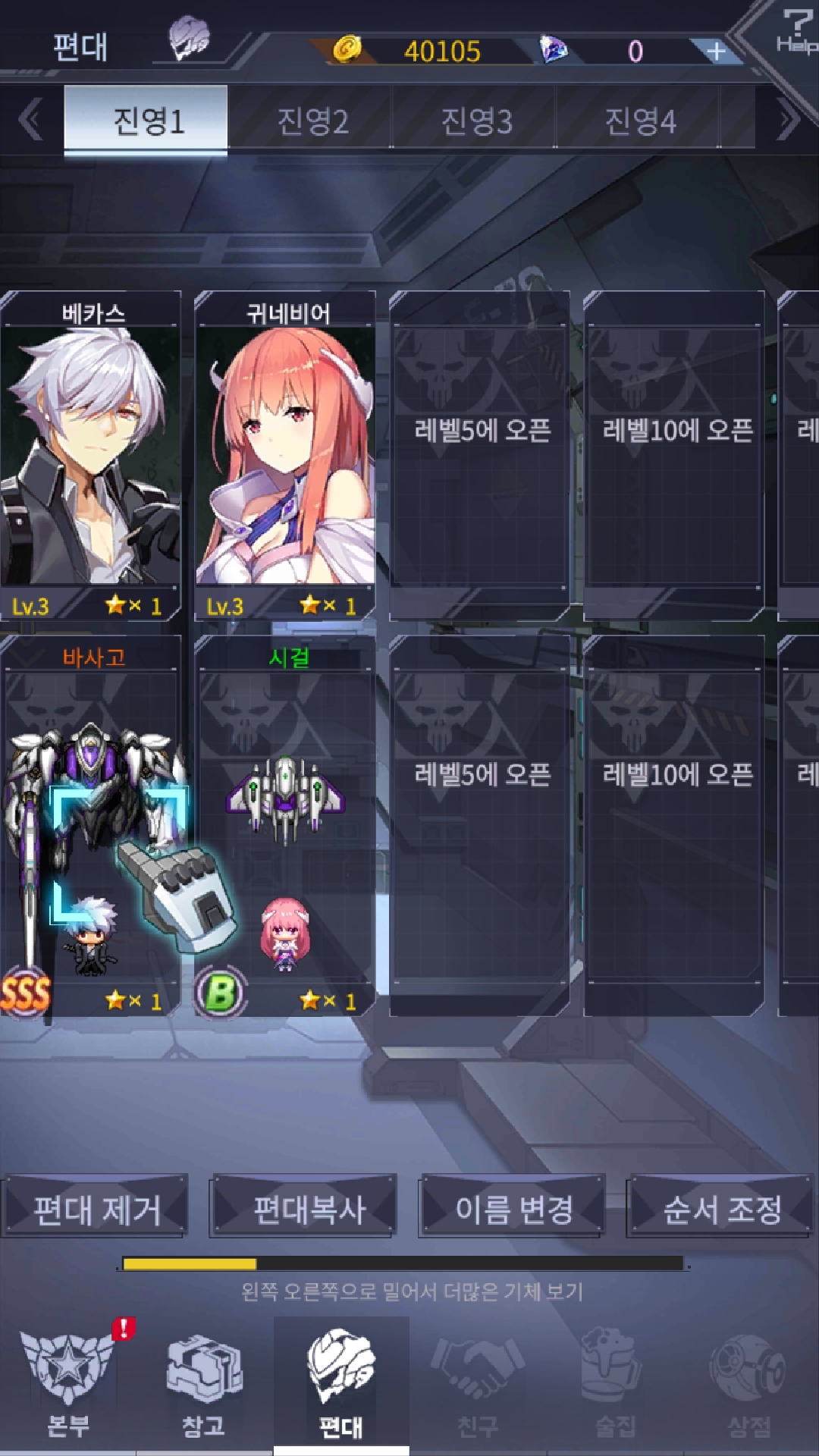 사실 과금을 유도하는 게임이라면 캐릭터 따로 메카 따로 뽑기를 통해서 획득할 수 있도록 했을 텐데 기동전대는 그래도 양심적으로 서비스를 하는 곳이라는 게 느껴집니다.