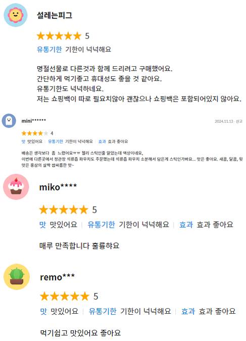 역시 정관장이라는 인지도에 맞게 많은 사람들이 만족하면서 구매를 하고 있는 것을 확인해볼 수 있었습니다. 맛 또한 많은 분들의 취향에 맞춰져 다들 만족스러움을 표시하고 있었죠.