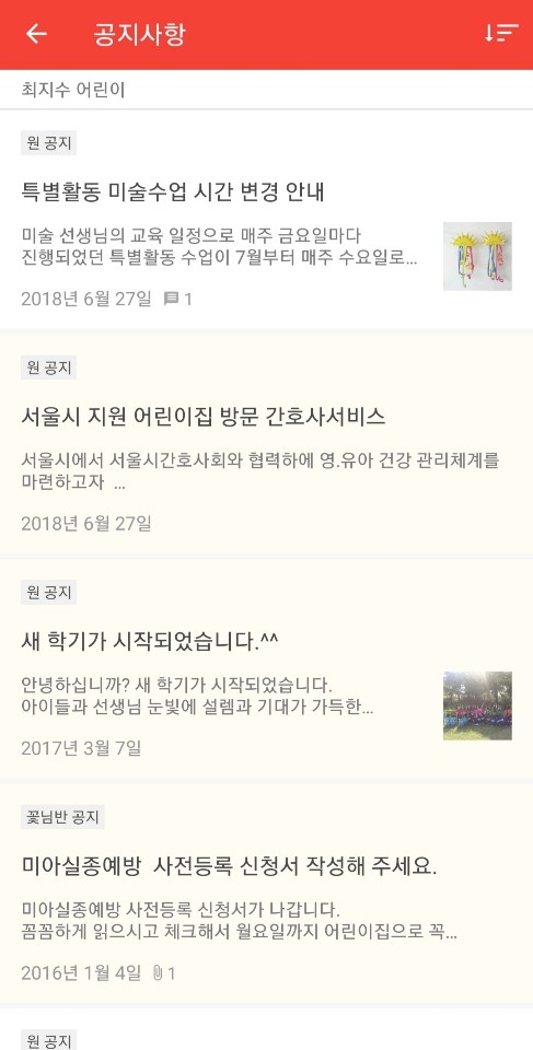 그래서 중요한 공지를 확인하지 못한 부모님들은 다시 알림을 확인할 수 있도록 되어 있습니다.