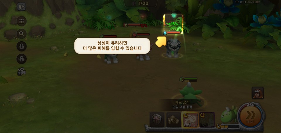 전투에서는 상성에 따라 타깃에게 더 많은 피해를 줄 수 있습니다.